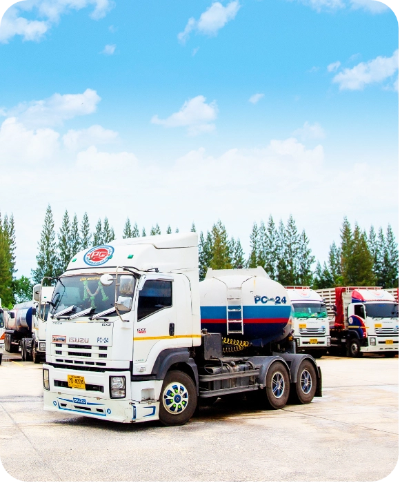 This service is provided by PC, which has over 40 years of expertise and experience in the transport and logistics industry. PC operates under the quality standard for freight services (Q Mark) from the Department of Land Transport. PC is registered as a fuel transporter under Section 12 of the Fuel Oil Trade Act B.E. 2543 (2000) and owns a total of 148 vehicles for transporting both liquid and dry goods. This fleet includes 117 trucks for palm oil products, 26 trucks for fuel products, and 5 trucks for general cargo.